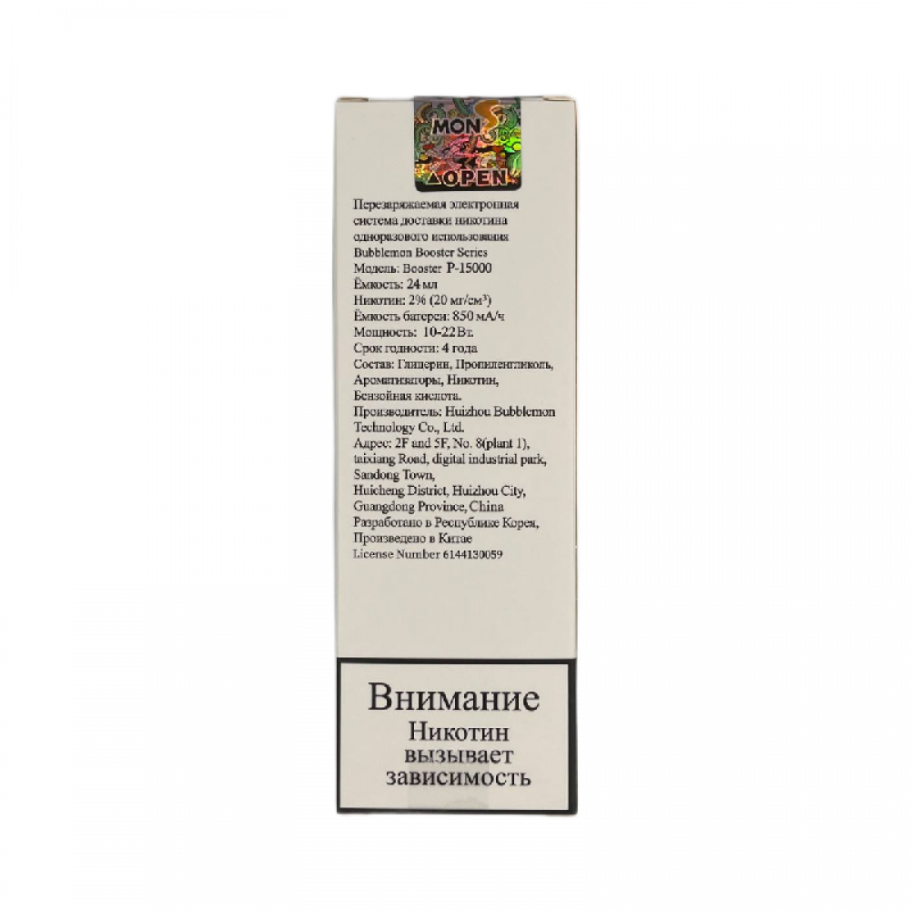 Технические характеристики Bubble Mon Booster P-15000 Малина Драконий Фрукт