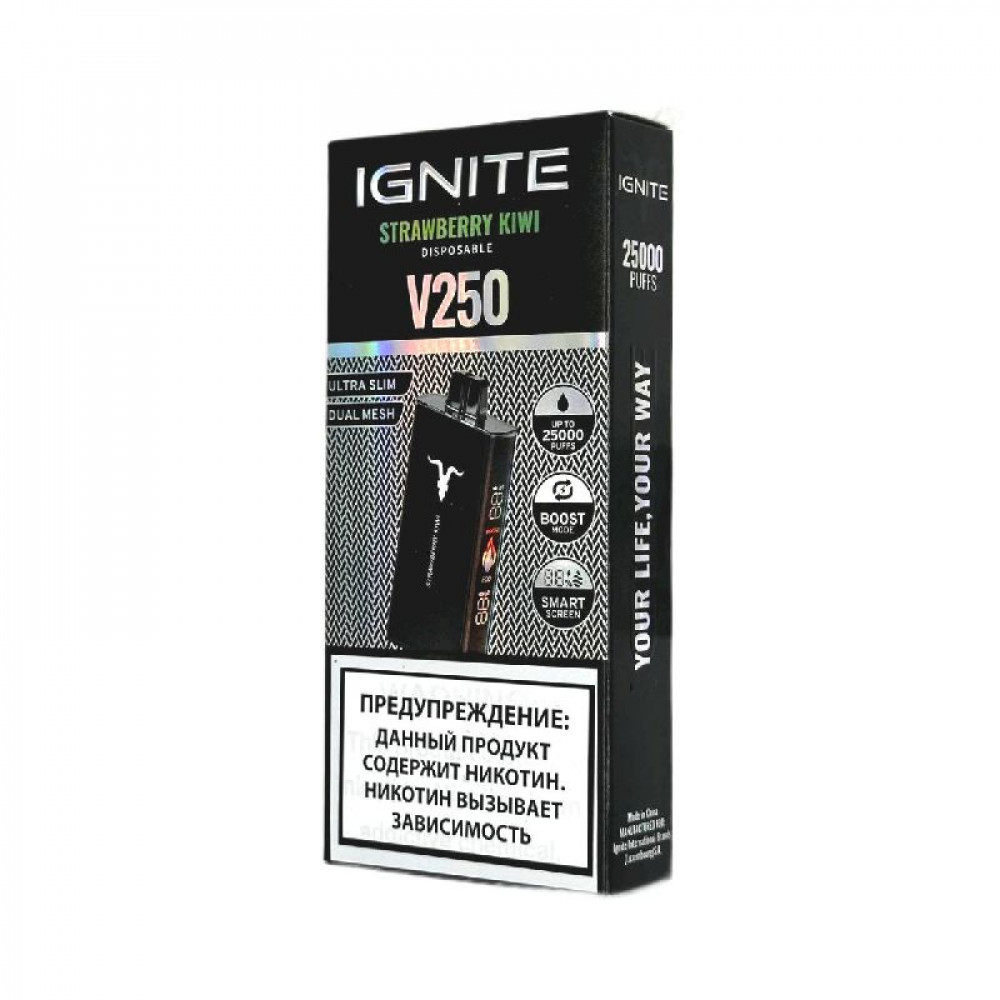 Электронная сигарета Ignite V250 Black 25000 - Strawberry Kiwi (Клубника киви) - купить в Сарапуле