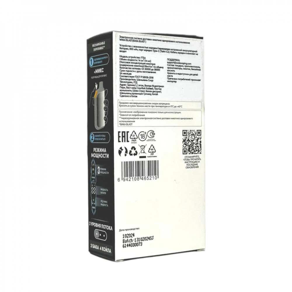 Технические характеристики WAKA BLAST 38000 Hard - Арбуз + лед микс